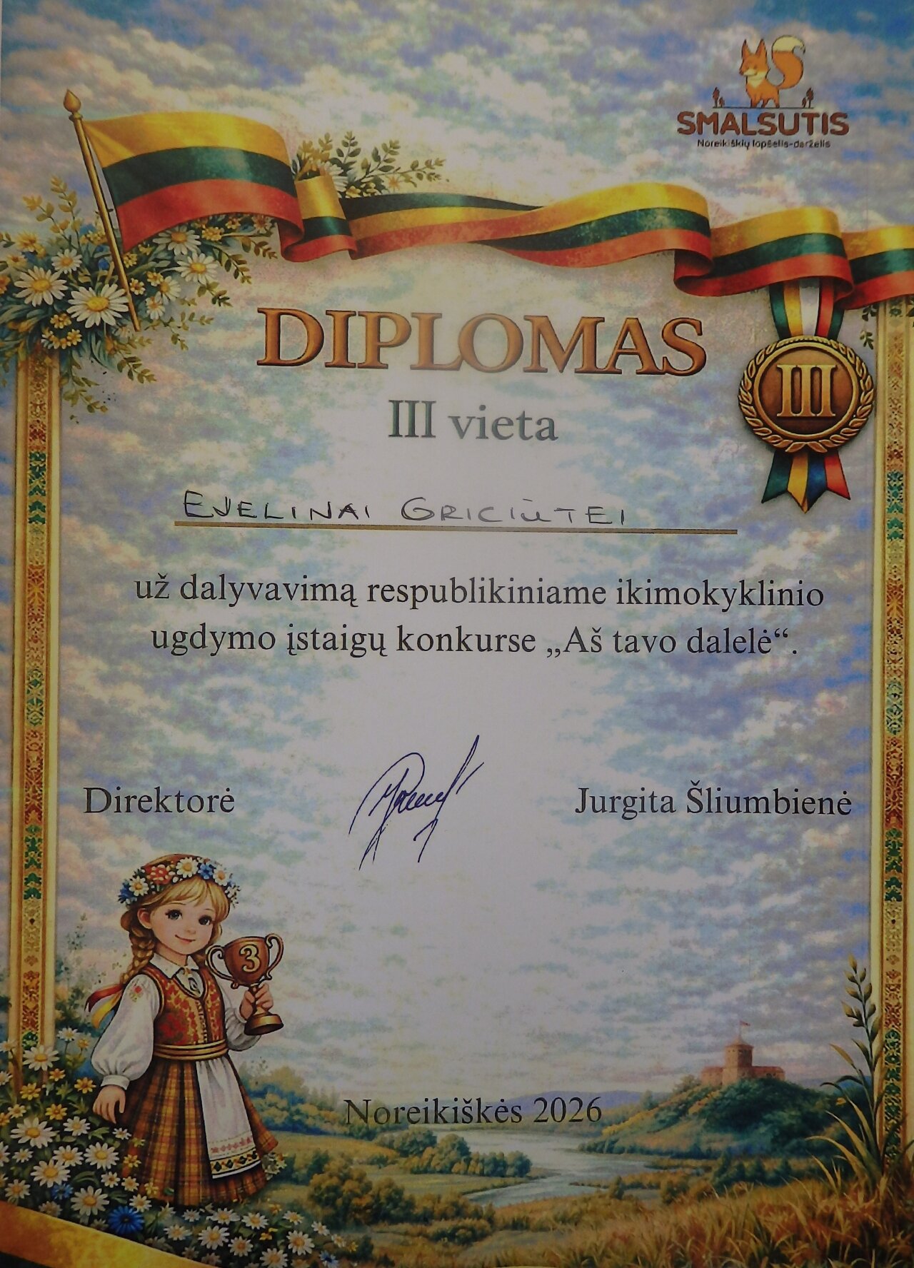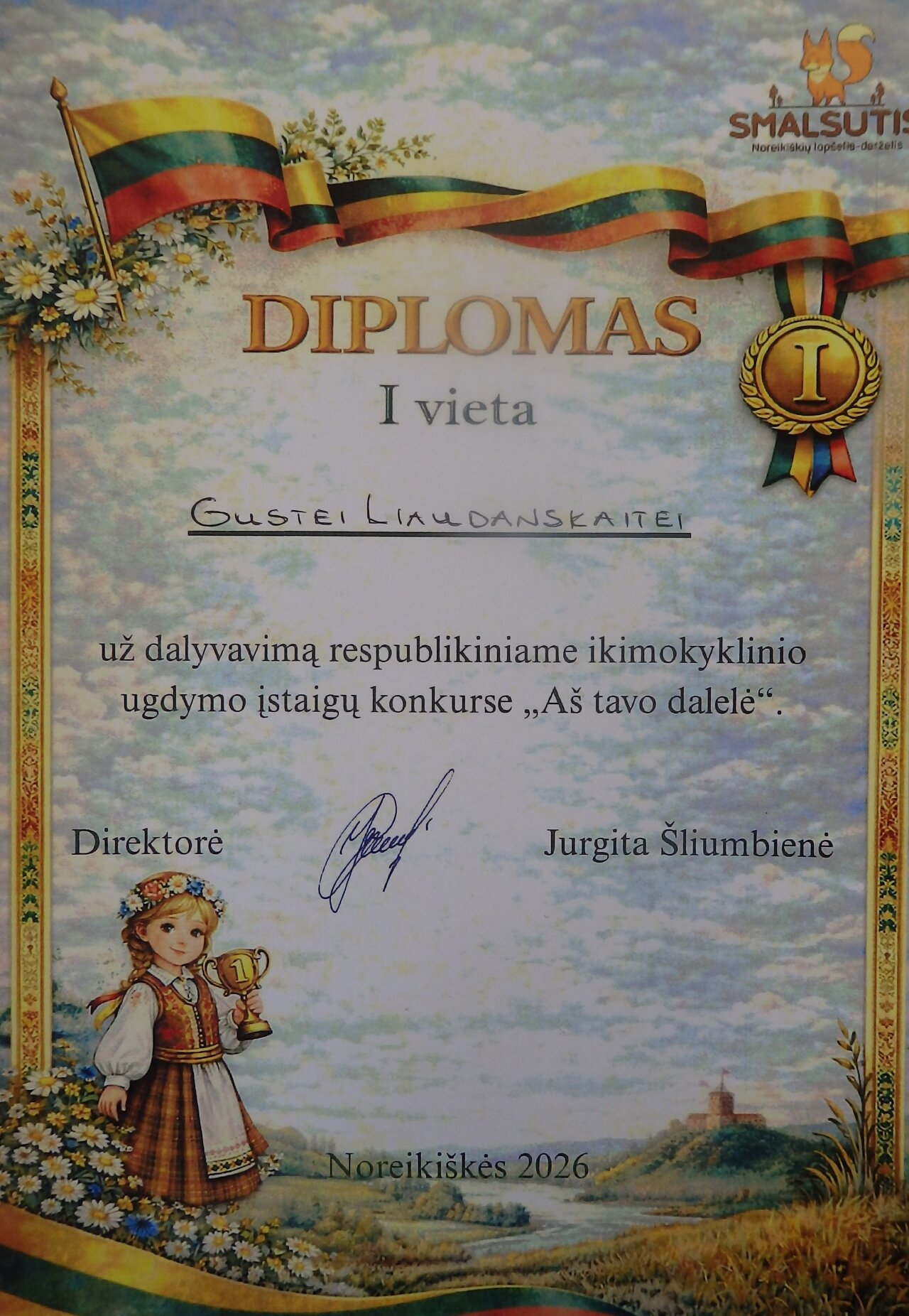 Puoselėdama ir skatindama vaikų meninę raišką ir pilietiškumą per lietuvišką žodį ir poeziją „Žingeidukų“ grupės mokytoja Ramunė Repečkienė grupės vaikus ruošė respublikiniam skaitovų konkursui, kurį organizavo Kauno r. Noreikiškių lopšelis-darželis „Smalsutis”. Ruošdamiesi konkursui vaikai susipažino su poetų kūryba apie Lietuvą. Mokėsi raiškiai ir emocionaliai deklamuoti eilėraštį. Kartu puoselėjome taisyklingą gimtosios kalbos tartį. Ugdytinė Gustė Liaudanskaitė tapo I vietos laimėtoja, o Evelina Griciūtė - III vietos laimėtoja. Didžiuojamės ir sveikiname Gustę ir Eveliną ir jas paruošusią mokytoją Ramunę Repečkienę.