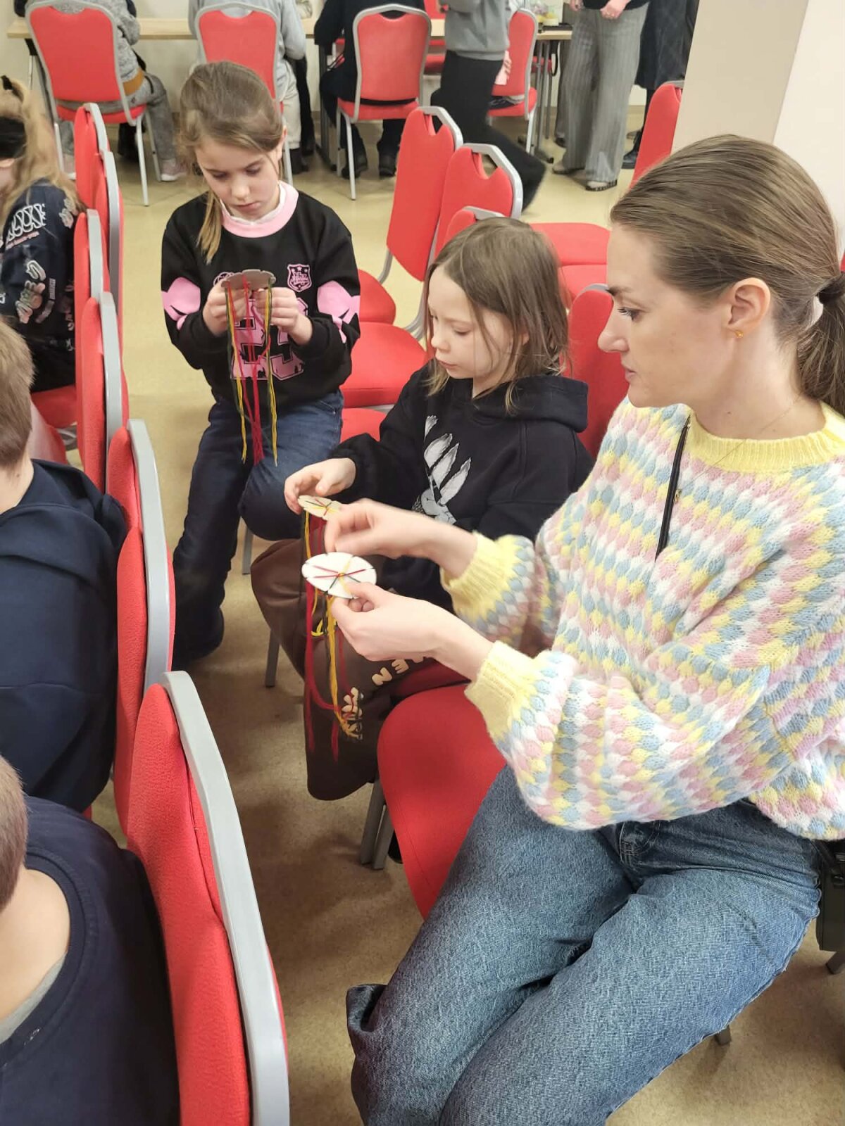 Kovo 5 d. mūsų antrokai dalyvavo edukacijoje – „Kuriu pats. Audimas. Tautinė juostelė“, kuri vyko JKC Ruklos salėje. Edukaciją vedė Loreta Ratautienė. Vaikai susipažino su lietuviškų raštų ir spalvų reikšmėmis, mokėsi pynimo technikos, o svarbiausia – patys nusipynė po savo juostelę. Mažuosius lydėjo ir pinti padėjo mokyklos psichologė Kristina, specialioji pedagogė Virginija ir mokinio padėjėjos Regina ir Natalija.