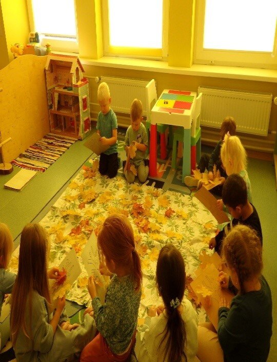 „Gamta yra mokytoja, kuri pranoksta mus visus. Jos ritmai, ciklai ir nuolatinė transformacija ugdo vaiką subtiliau negu bet kokia knyga“. Todėl savo ugdytinius pakvietėme tapti rudeninės gamtos tyrinėtojais, kad ieškotų, pamatytų, išgirstų, pajustų. Kiekvienas pastebėjimas ir pamatymas vaikams tapo nauja patirtimi, kurią perkėlėme į darbelius. Aktyviai dalyvavome respublikiniuose projektuose ir parodose apie rudenį, o vaikų kūrybinių darbų parodoje-konkurse “Ruduo-vaiko akimis” „Žingeidukų“ grupės ugdytinė Kamilė Blaudžiūnaitė tapo I vietos laimėtoja savo amžiaus grupėje.