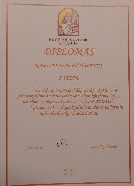 Didžiuojamės ir sveikiname Kamilę Blaudžiūnaitę ir ją paruošusią mokytoją Ramunę Repečkienę.